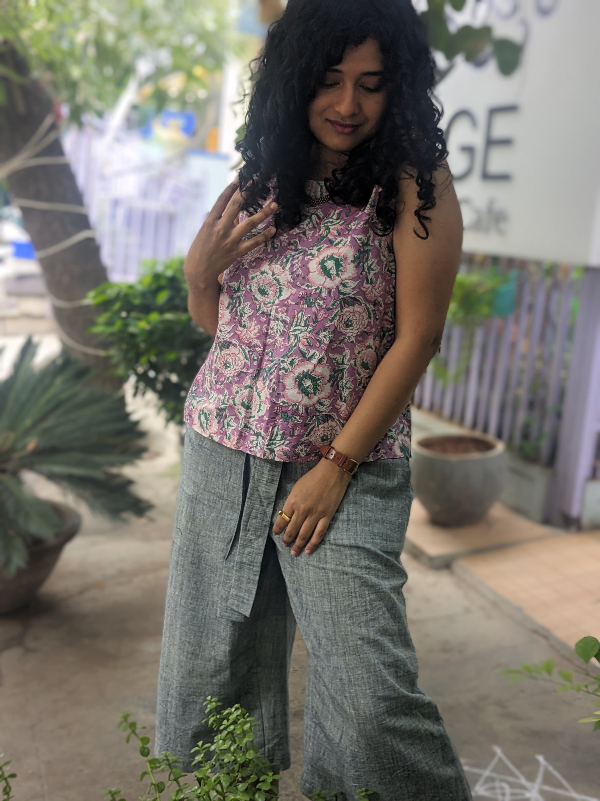 Women's Sleeveless Top | Block Print | Pink Dahlia