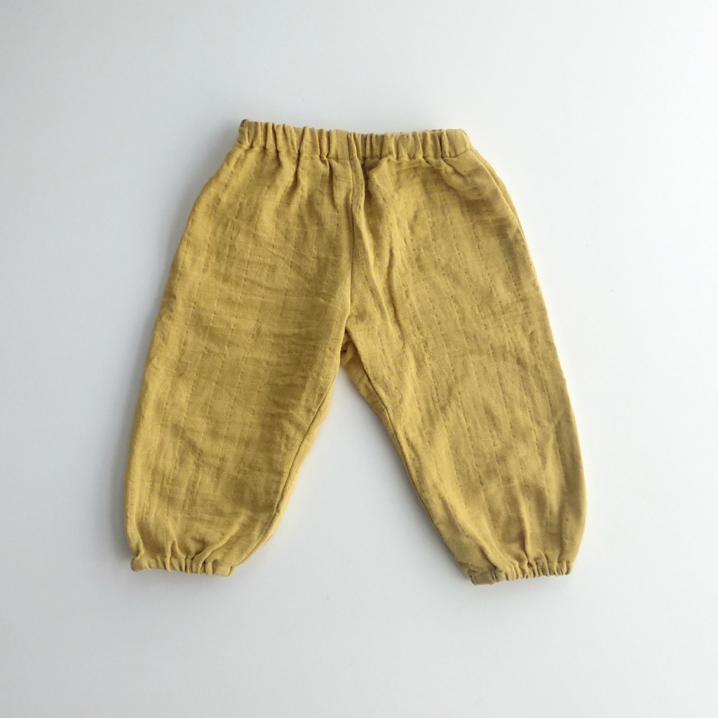 Balloon pants with elastic at the waistline and the hem. Comes with side pockets.