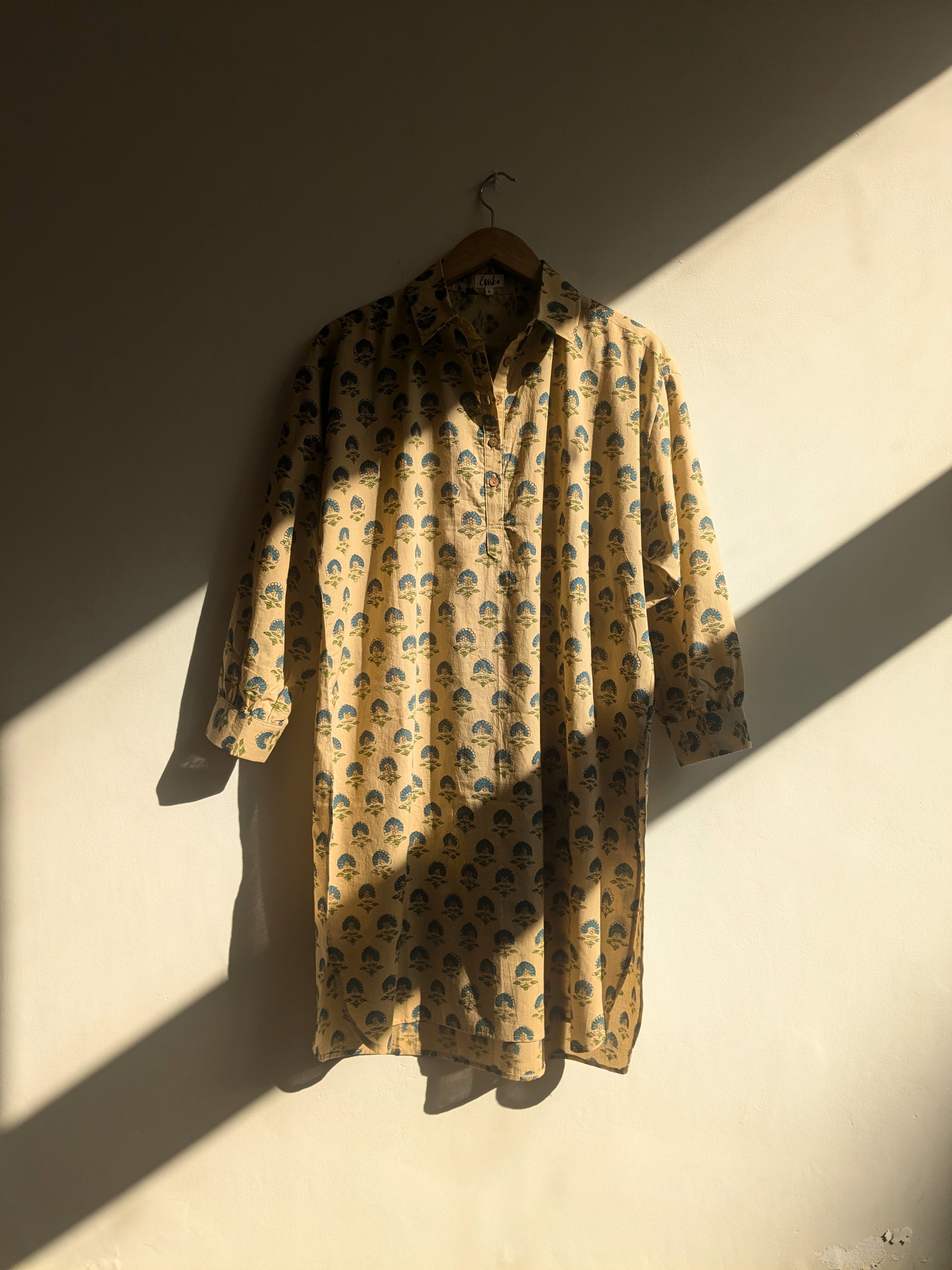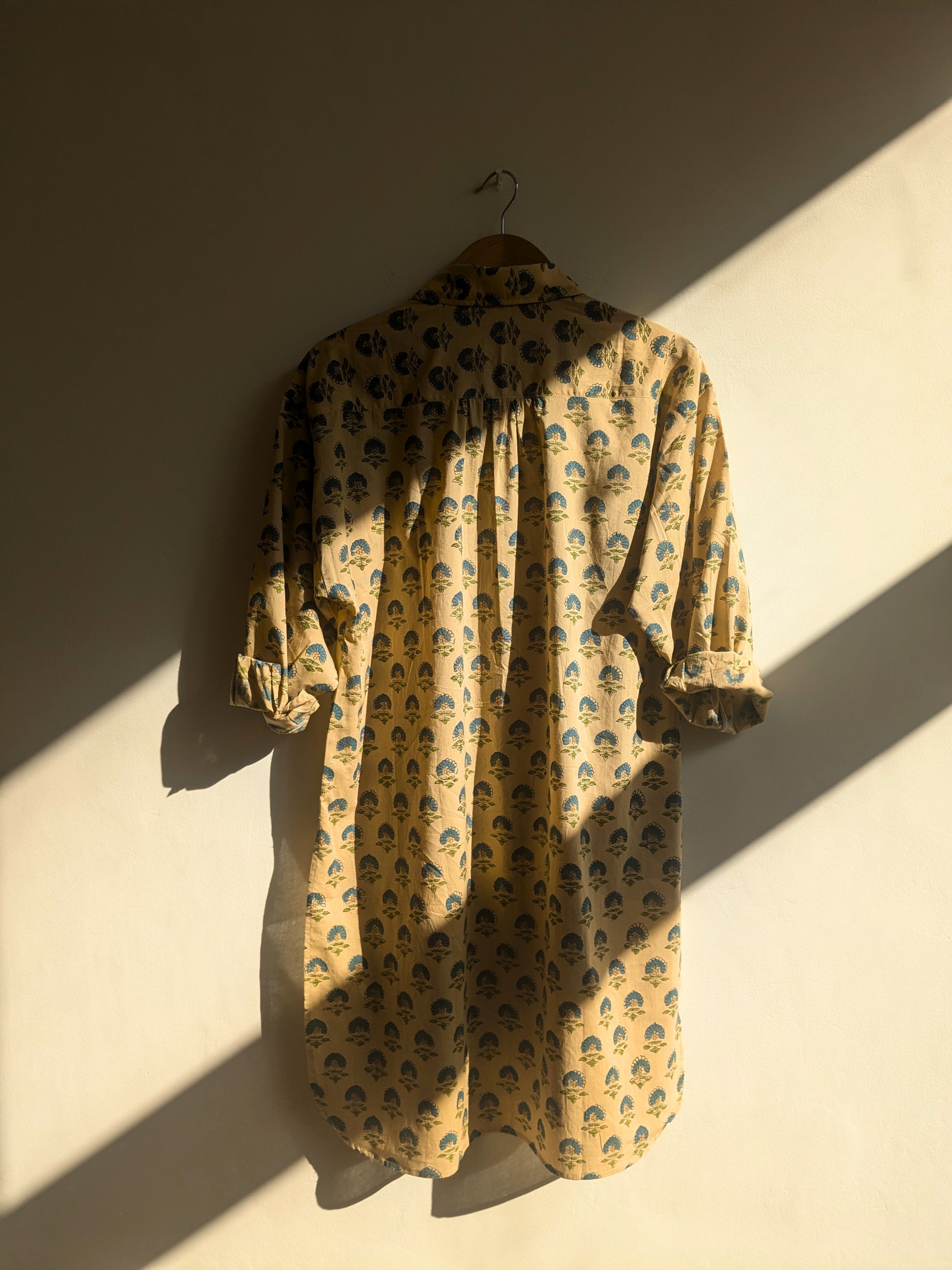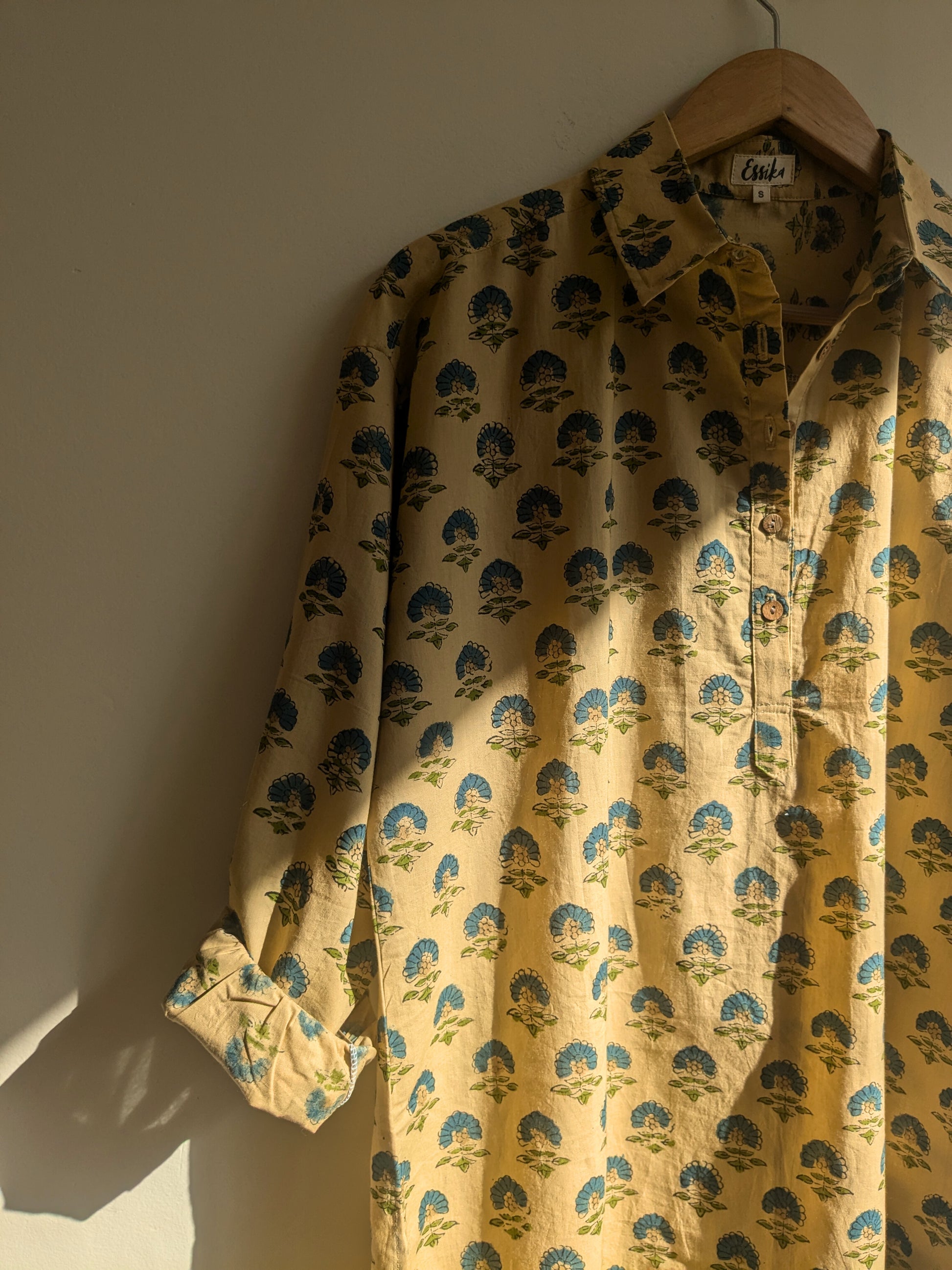 This is a longer version of our oversized shirt. It is a roomy kurta that is great for everyday comfort wear. Features a full length sleeve with a cuff just like our oversized shirt.