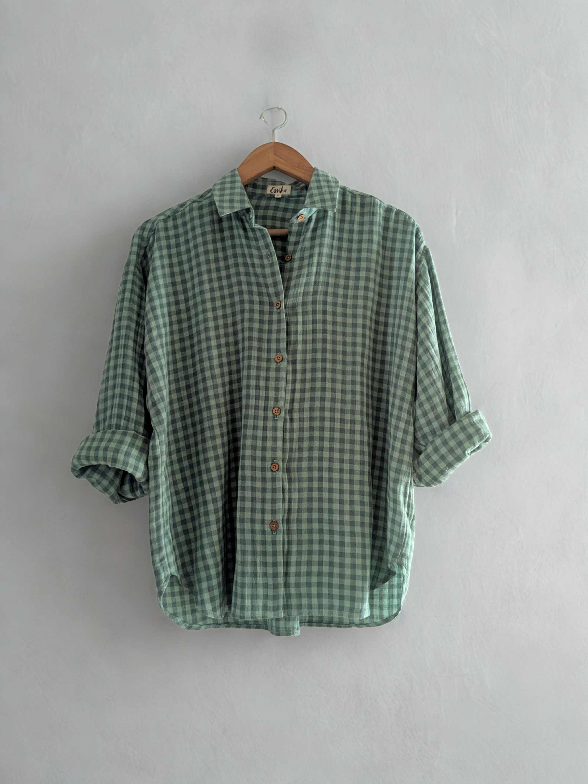 Women's Oversized Shirt | Cotton Gauze | Green Checks